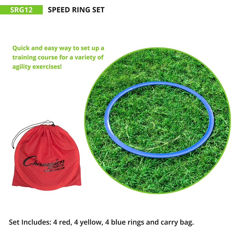 - 4 red, 4 yellow and 4 blue 18″ diameter plastic rings