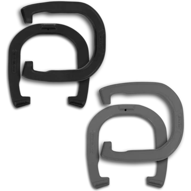 - Conveniently store (2) black forged steel horseshoes, (2) grey forged steel horseshoes and (2) 24 steel stakes in (1) 1680 denier durable nylon bag with reinforced pockets and velcro handle. Rules and instructions are included.