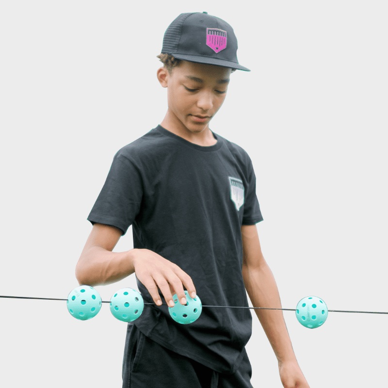 Introducing the Plate Crate Clip Hitter your secret weapon for refining your baseball swing. Elevate your training with this innovative tool that features a series of wiffle balls strung together on a cord.