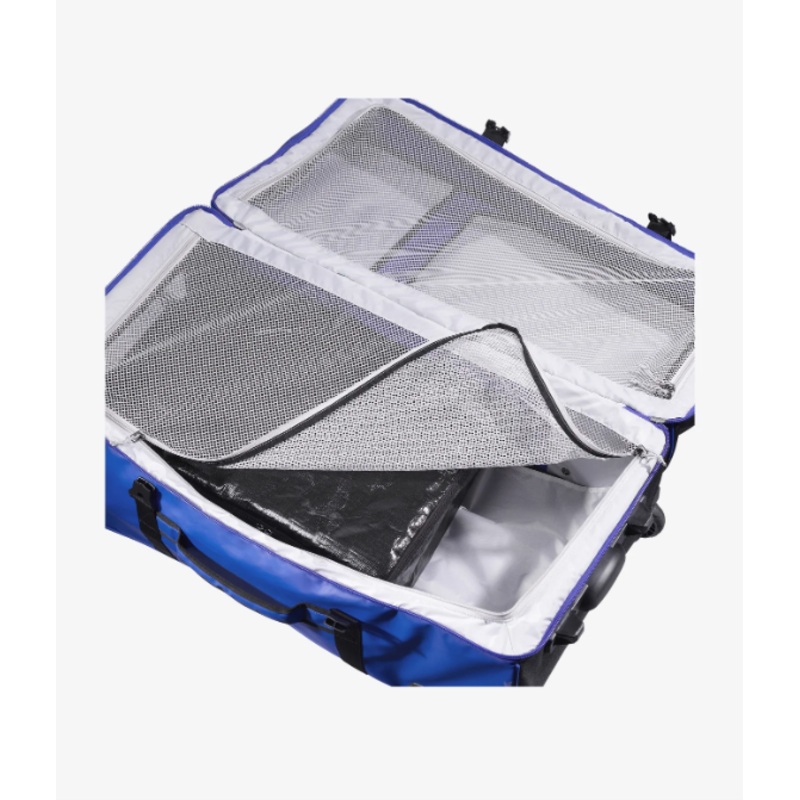 Designed with all your ski travel needs in mind, Salomons spacious 130-liter container bag has smooth rolling inline wheels to carry everything youll need away from home. Featuring a separate, waterproof compartment for boots or wet clothes, a split opening for easy packing, and an easy-to-access laptop sleeve, its every skiers on-the-go dream.