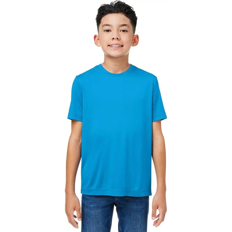 4 oz/yd / 140 gsm, 100% polyester interlock; UV 50+; Moisture-wicking;Tear away label;