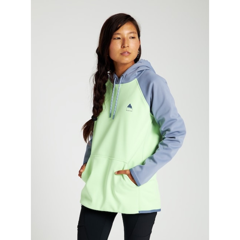 Weather-resistant, adventure-ready goodness. Pull on the women’s Burton Crown Weatherproof Pullover Fleece and put down the weather forecast. This jacket will keep you and your things dry, and has an internal zippered media pocket plus kangaroo and stash pockets, too. Pull up the drawcord hood and consider yourself ready.