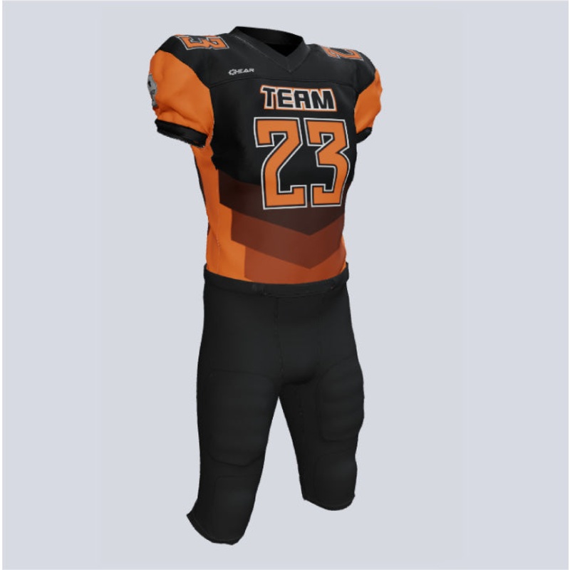 Introducing our “Chevron” custom football uniform, fashioned to reflect the upward trajectory of your team, club, or school’s unique style. Armed with advanced moisture-wicking technology, your choice to invest in this football jersey will be a direct route to satisfaction. Create a design that’s truly your own, mirroring your team’s upward climb, and boost your team’s spirit and pride to new heights. With our “Chevron” football uniform, your team’s performance will ascend in a pointed surge to the next level.
