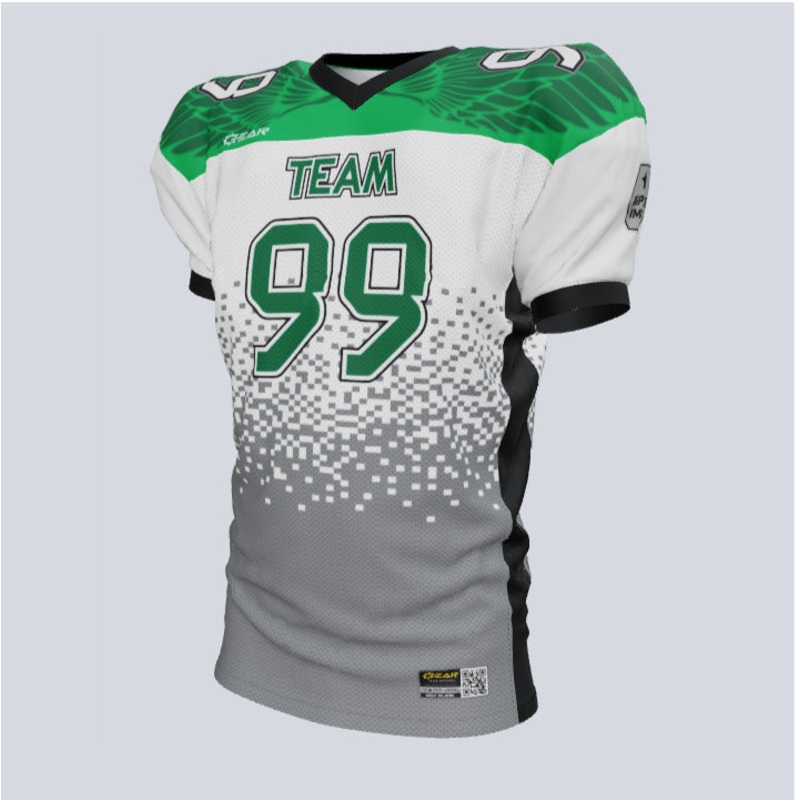Introducing our “Eagle Wing” Loose Fit Custom Football Jerseys, where your team’s style soars majestically, proudly outshining the competition. Meticulously tailored to represent your team, club, or school’s unique spirit, these jerseys embody the perfect fusion of performance and regal elegance. Fortified by advanced moisture-wicking technology, your investment in these football jerseys ensures a noble ascent to satisfaction. Create a design that is authentically your own and elevate your team’s pride to the lofty peaks of success. With our “Eagle Wing” jerseys, let your team spirit spread its wings and dominate the field with grace and power.