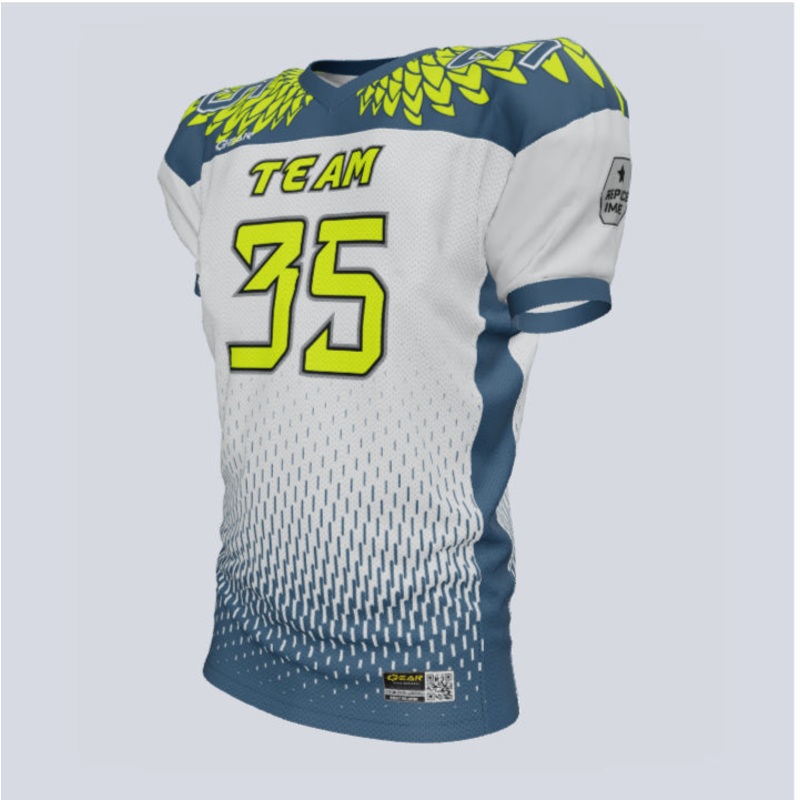 Introducing our “Raptor Wing” Loose Fit Custom Football Jerseys, where your team’s style dives into the game with the agility and fierceness of a prehistoric predator. Expertly tailored to capture your team, club, or school’s unique essence, these jerseys embody the perfect blend of performance and primal elegance. Empowered by advanced moisture-wicking technology, your investment in these football jerseys ensures a ferocious flight to satisfaction. Design a look that is genuinely your own and elevate your team’s pride to the towering heights of victory. With our “Raptor Wing” jerseys, let your team spirit soar on the wings of triumph across the field.