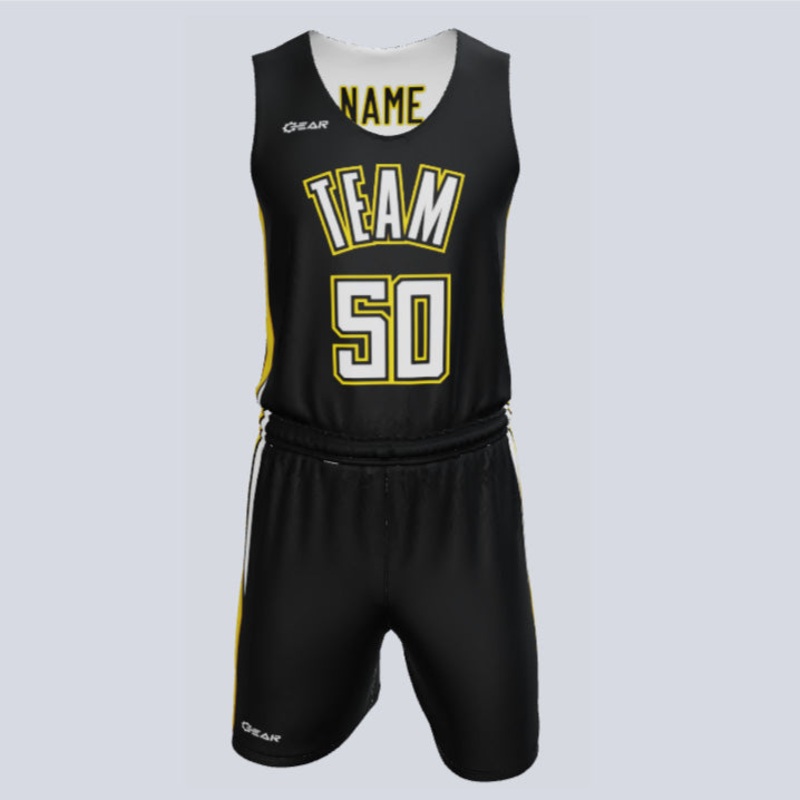 Score big with our “Shooter” custom reversible single-ply basketball uniform set. This premium ensemble is a slam dunk in style and functionality. Fully customizable, it’s tailored to your team’s distinct identity. Elevate your game on the court and field while showcasing your pride in a design that stands out. Trust your investment in this top-notch basketball uniform won’t let you down. With advanced moisture-wicking tech, you’ll stay cool under pressure. Don’t just play the game own it with confidence and flair. Your team’s legacy starts here.