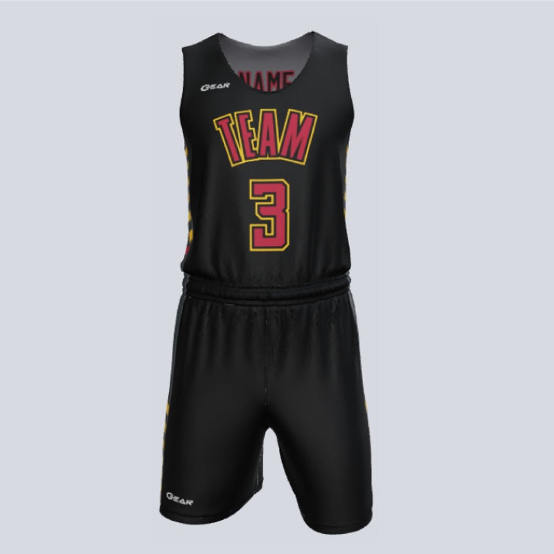Ignite the court with our “Speed” custom reversible single-ply basketball uniform set. Tailored for excellence, this premium kit is fully customizable to match your team’s distinct style. Rest assured, your investment in this remarkable basketball uniform will shoot for success. Design a look that’s uniquely yours, boost team spirit, and elevate pride with personalized jerseys and shorts. The cutting-edge moisture-wicking technology keeps you dry and focused, both on the court and field. Make a move that counts and score big with this winning choice!