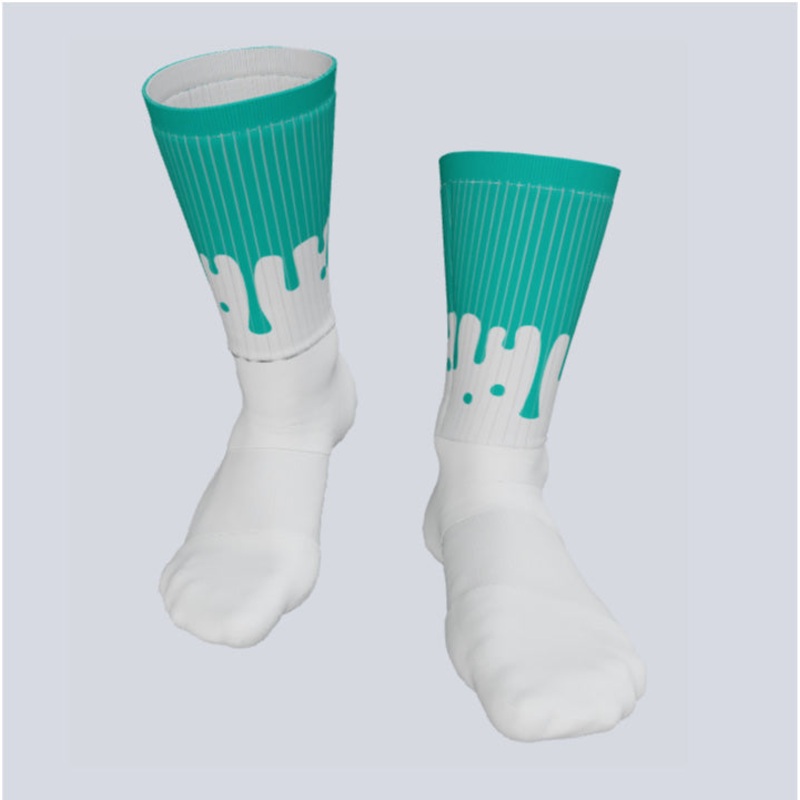 These Custom Splash Crew Socks are engineered for durability, comfort, and top performance across all sports. Crafted from a premium blend of polyester and spandex, these athletic socks provide a soft, breathable, and moisture-wicking fit to keep you comfortable through any game or intense workout. Whether youre on the field, court, or track. Customization options are available with a variety of colors and artwork choices, allowing you to create a truly unique pair.