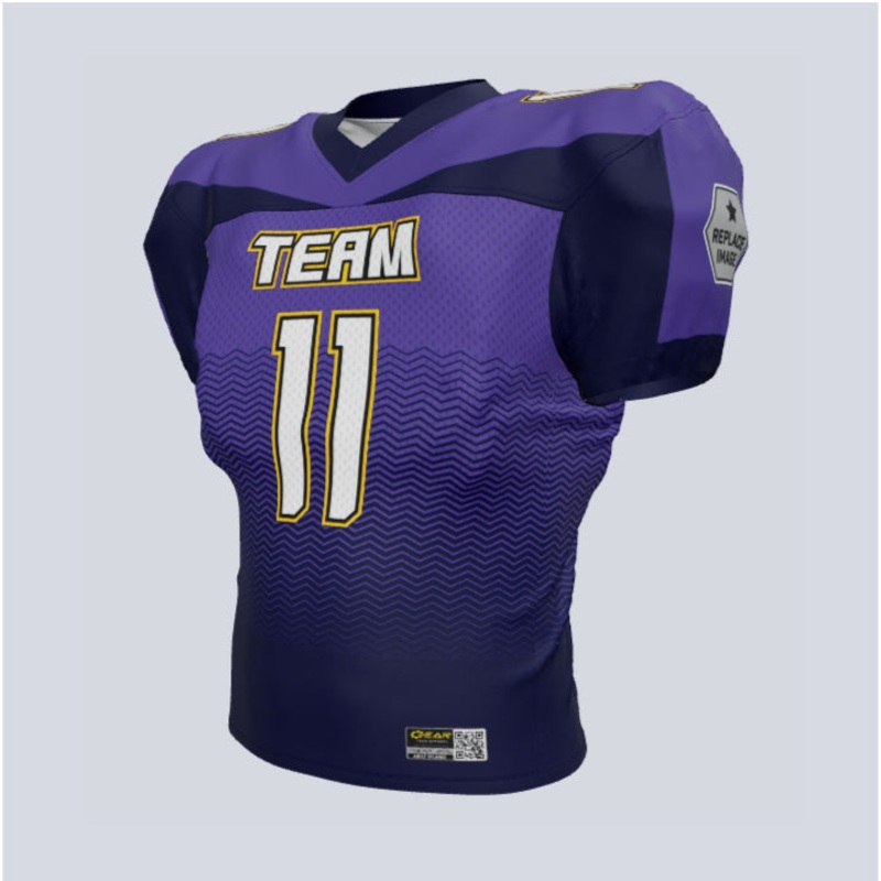Dive into victory with our “Stream” team football jersey. Fully customizable, it flows with your unique style. Trust your investment for unrivaled performance. Make a splash with your own design and take your team to new heights.