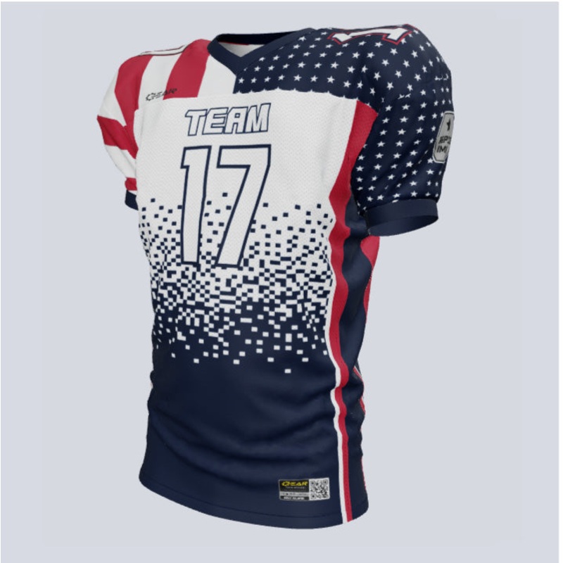 Introducing our “Team America” Loose Fit Custom Football Jerseys, where your team’s style waves the flag of victory with pride. Tailored to represent your team, club, or school’s distinctive spirit, these jerseys stand as a monument to performance and patriotism. Emboldened by advanced moisture-wicking technology, your investment in these football jerseys pledges allegiance to satisfaction. Craft a design that is genuinely your own and salute your team’s pride, elevating it to the stars and stripes of success. With our “Team America” jerseys, let your team spirit be the guiding light towards triumph on the field.