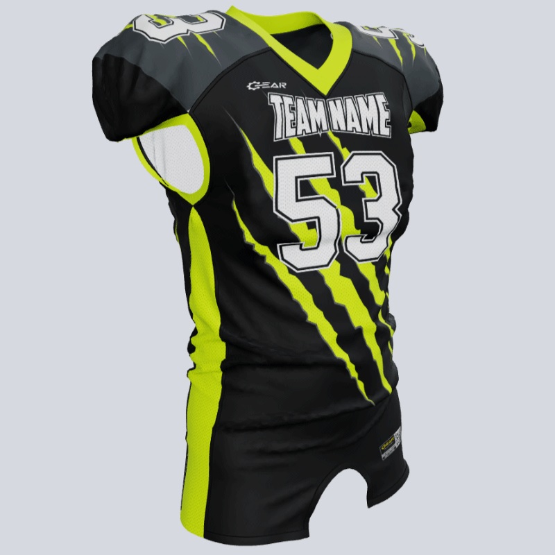 With our “Tear” Lineman Fitted Custom Football Jerseys, you can rip through the competition. These jerseys are fully tailorable to match your team, club, or school’s unique flair. Equipped with advanced moisture-wicking technology, your investment won’t be a tear-jerker. Craft a design that tears away from the ordinary and witness your team’s performance tear up the field and reach new heights.