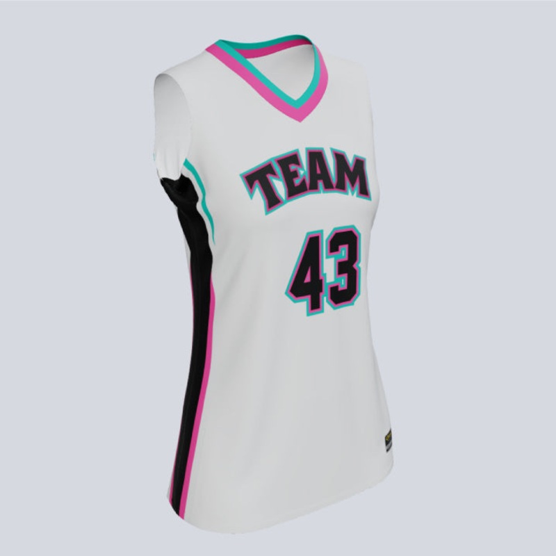 Elevate your game with our custom ladies’ ‘Trifecta’ basketball jerseys! Fully customizable to match your team, club, or school’s unique style, these jerseys are your canvas for team pride. With advanced moisture-wicking and pattern technology, they’re a slam-dunk choice that guarantees satisfaction. Make it uniquely yours!