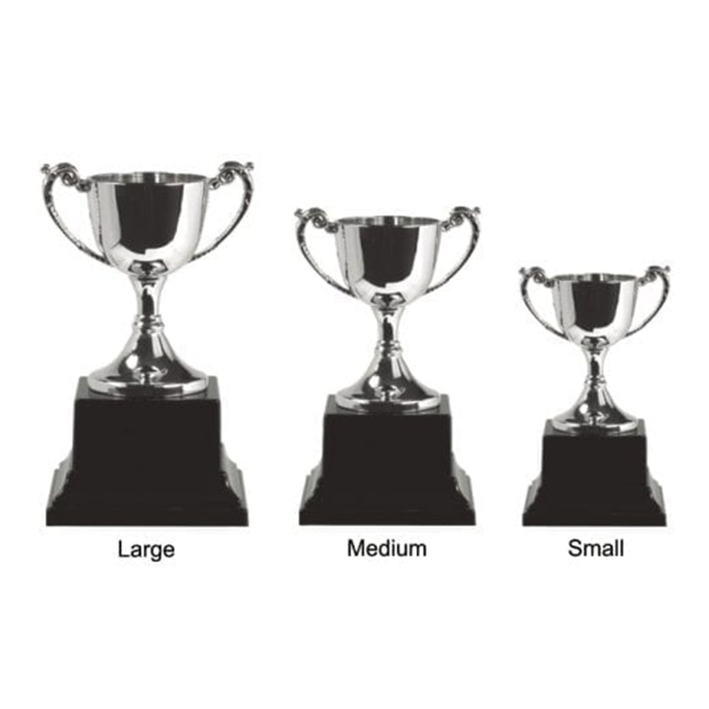 Metal and durable with decorative styling on the handles. The go to cup for keepsakes and to keep all winners happy when they need to return the larger cup which needs to stay at school club etc.
