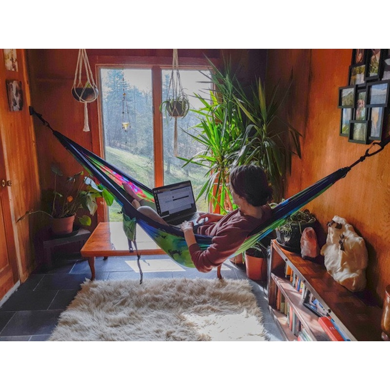 Patented adjustable suspension straps rig up your hammock for off-the-ground relaxation.