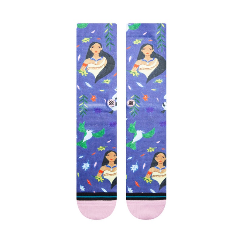 Disney’s Pocahontas is featured on these crew socks designed with all the colors of the wind.
