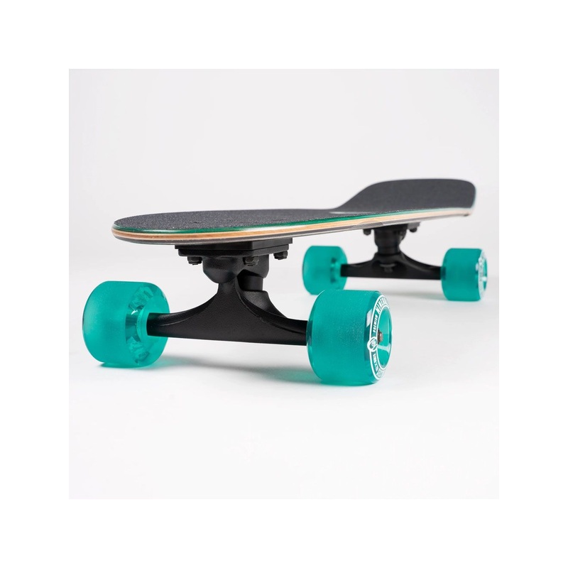 This board features: 7 Ply Maple, Maple Two-Color Split Bottom Ply, Raised Texture Print Under Black and White, Die-Cut Grip with Exposed Colored Top Ply, Kicktail. Measures 7.875″ x 28.5″ with a 14.75″ wheelbase. Includes: 8.375″ Gullwing Mission Trucks, 61mm 78a Nineballs, ABEC 5 Greaseball Bearings, 0.25″ Recycled Plastic Risers, 1.25″ Hardened Steel Bolts, Regular Grip Tape.