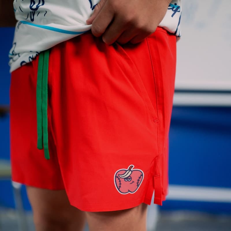 Add a crisp pop of color to your game with the Back 2 School Apple Shorts from Plate Crates August 2025 Crate. These bright red shorts feature a vibrant green waistband and a playful apple patch detailblending school vibes with athletic style. Whether youre sprinting through drills or just heading to class, these shorts are made to stand out and stay comfortable.