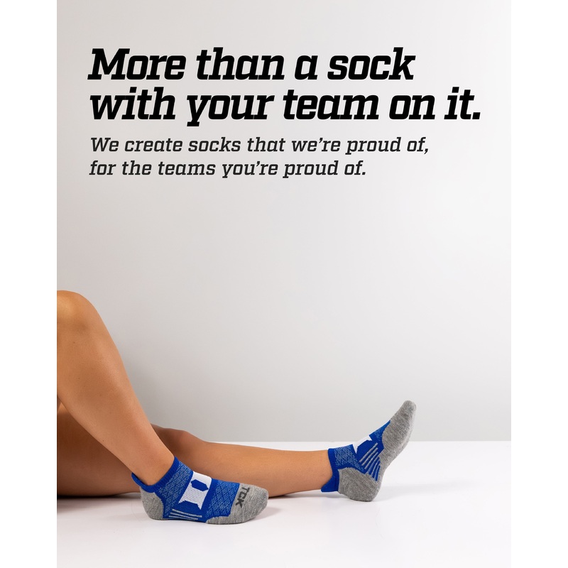 Step up your sock game with TCK’s Duke Blue Devils no show socks, high performance NCAA sock made in the USA. Designed for sneakerheads, golfers, runners, and fans alike, these socks feature a soft merino wool footbed, breathable mesh upper, arch support, and a smooth toe seam. The heel tab protects without showing. Perfect for all-day comfort, year-round wear, and gifting for birthdays, Fathers Day, grads, or Christmas.