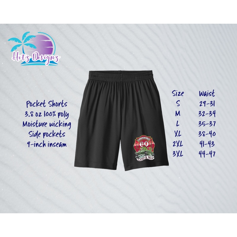Moisture wicking Sport-Tek 9-inch pocket shorts.