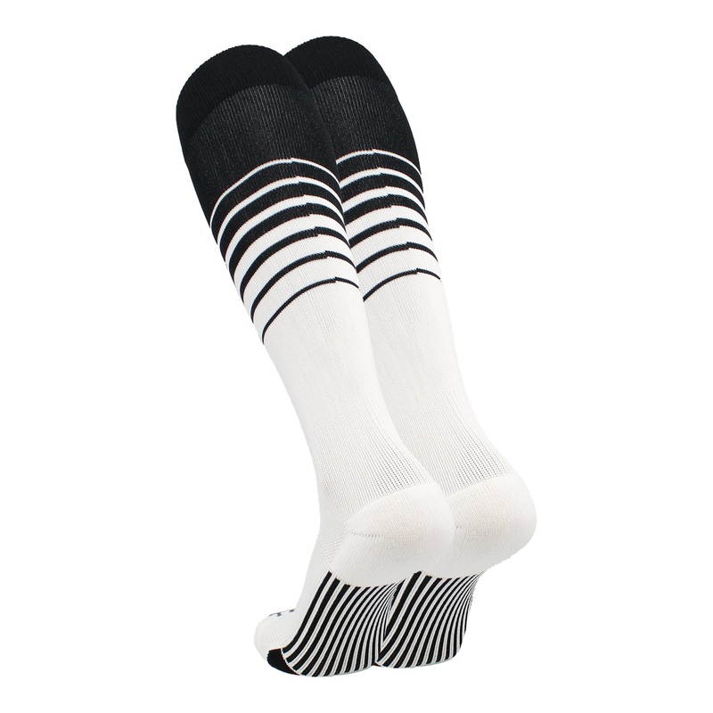 TCK Sports Elite Breaker Soccer Socks. Good stretch to hold the shin guards in, and double welt top to keep the socks up. High performance, moisture wicking, blister control, odor control, athletic over the calf socks for all team sports and elite athletes. High quality fiber contents: 75% Polypropylene, 12% Nylon, 10% Elastic, 3% Lycra Spandex. (Fiber content for some colors may vary.) Made in USA.