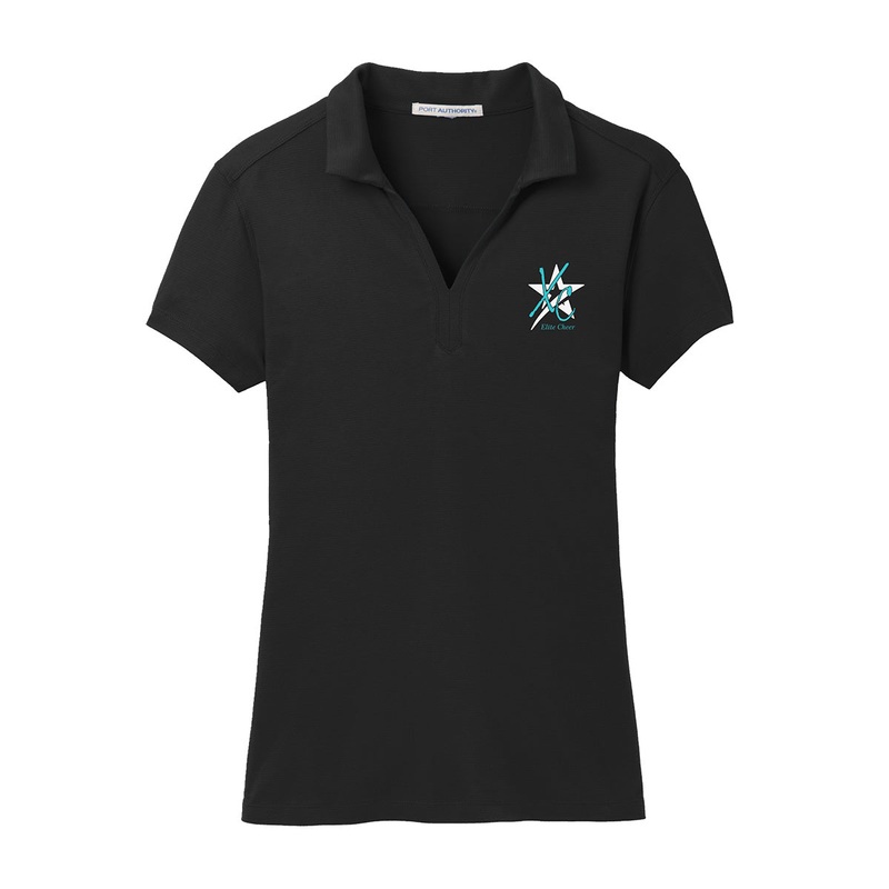 Elite Cheer Embroidered Dry Mesh Polo in black.