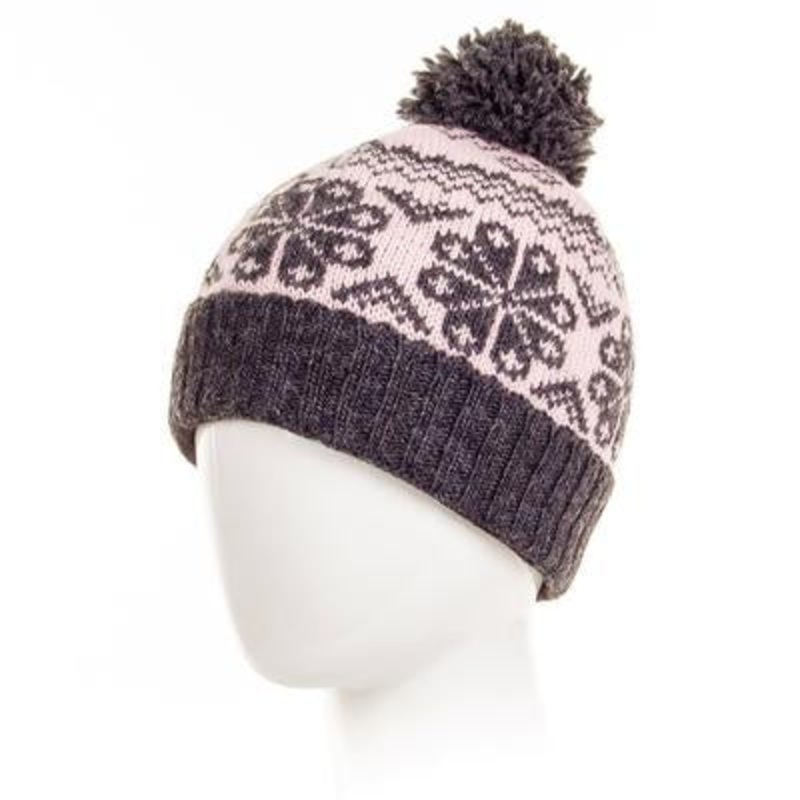 The Eva Beanie features a traditional two-toned Tibetan pattern, wide ribbed headband for comfort, matching pompom and fleece lining. Look familiar? The Eva design is also available as a skirt, sweater, handbag, and across Laundromat’s full range of knitted accessories.