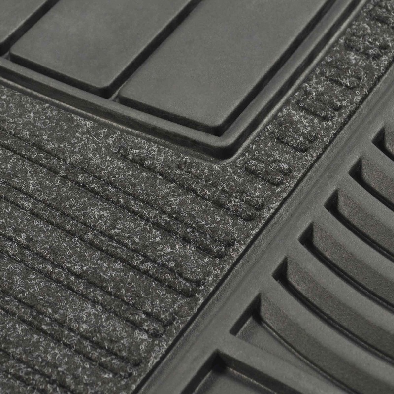 FANMATS 2 Piece Deluxe Car Mat Set is the perfect combination between our Vinyl and Carpet Car Mats. The base and edges are made from Vinyl, but there is a carpeted overlay down the middle. Vinyl construction adds stability and longevity to the mat, while the carpeted area is ribbed to scrape your shoes clean and trap the debris. The sides feature 2 3D molded inserts that show your favorites teams name in their colors. To ensure a great custom fit in your ride, the edges are trimmable so that you can contour the mat to your vehicles footwell. To keeps these mats looking pristine only basic care is needed, simply vacuum the carpeted and wipe down the team inserts.