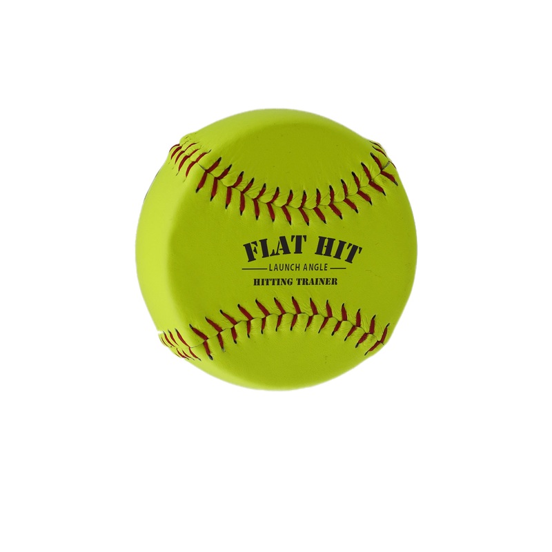 - Real Leather cover softball with a flat side to focus on hitting the ball on plane at the launch angle.