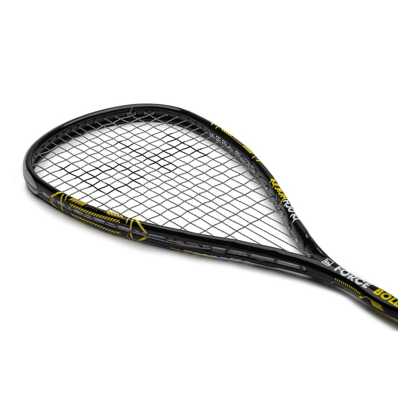 The Force Bold squash racquet is designed to provide incredible power, with its massive hitting surface using its 523 sq cm head size (largest in the industry) while also incorporating the VibraPlate technology and Bubble shaft design to reduce vibration, this racquet is one of the easiest racquets to use to dominate the court.