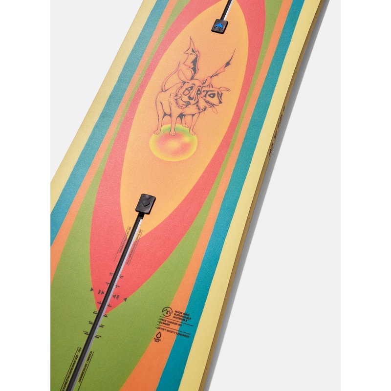 The men’s Burton Free Thinker Snowboard is a true twin spin on Danny Davis’ go-to, built for hot laps in the park, pipe, or mobbing side hits across the mountain. The unique true twin shape opens up the possibilities for creative expression in any direction, while the control of camber keeps it quick and poppy. 45 Carbon Highlights deliver snap without the stiff side effects. Throwback graphics top it off, adding a touch of Burton’s early 90s roots to an already iconic model.