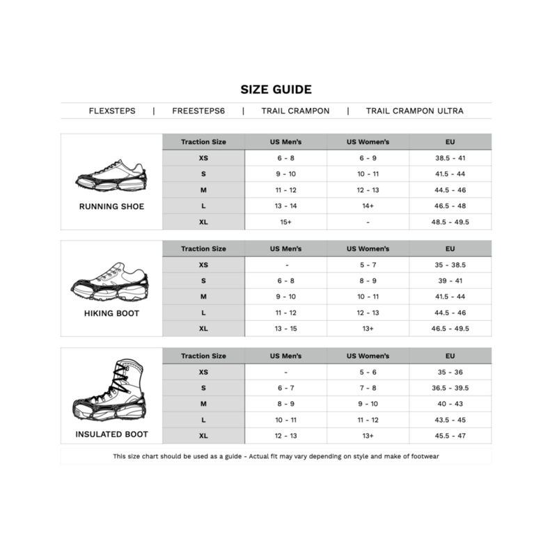 The redesigned FreeSteps6 offers durable, ultra-light traction performance to those needing a simple anti-slip aid for outdoor activities. FreeSteps6 provides excellent grip if you are winter walking, ice fishing on a frozen lake, working your way through muddy trail sections, manoeuvring slippery rocks while fly fishing (river wading), or simply shoveling an icy driveway – these crampons / ice cleats will give you the confidence to move around in slippery conditions.