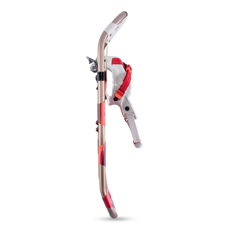 The Rotating Toe Cord design enables the tail of the snowshoe to drop, shedding snow off the tail. When weighted, the teeth on the toe traction underfoot bite deeply into the snow.