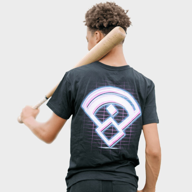But that’s just the beginning turn heads as you walk away with a retro-futuristic field design gracing the back of the shirt. This artistic interpretation of the diamond blends nostalgia with innovation, reminding you of the sport’s rich history while propelling you into a dynamic future.