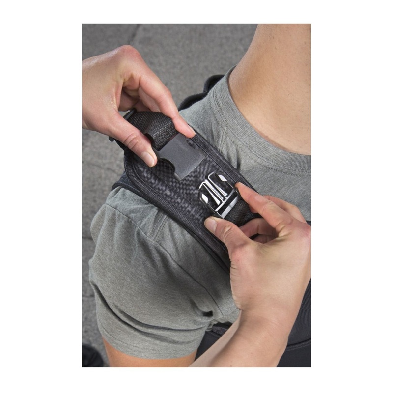 This unique design includes a stretchable neoprene strapping system which secures the vest to your body while allowing the vest to expand and accommodate to your normal breathing pattern during exercise. Vest holds double stitched 1/2 lb shot filled weight packets. Purchase additional 1/2 lb packets to adjust the short vest up to 20 lb or the long vest up to 40 lb.