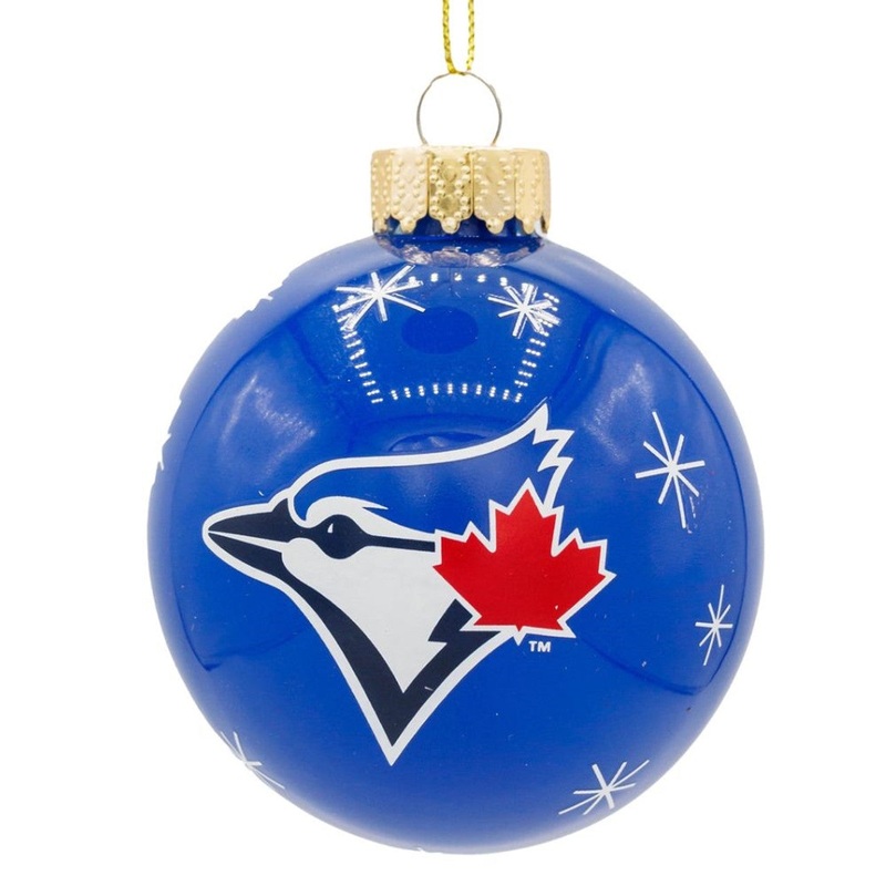 Dedicated Jays fans like you deserve a beautiful glass ornament on your tree! This Toronto Blue Jays glass ball ornament features a pattern of white snowflakes.