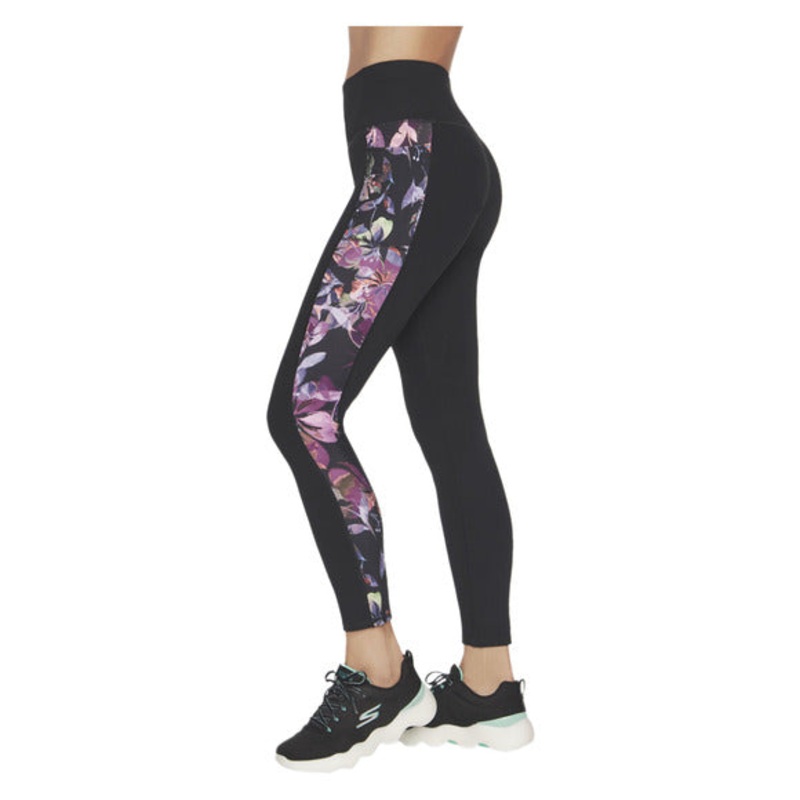Add a floral touch to your workouts with the stylish Skechers The GoFlex Ultraviolet women’s leggings. They feature a GoWalk GoFlex moisture-wicking, quick-drying fabric with a built-in UPF 40+ and a 4-way stretch for added comfort while out and about. Made from an air textured nylon yarn and a drawn twisted spandex, the textile offers abrasion-resistant properties, a soft cotton-like hand feel and matte finish. Plus, these high-rise pants come with a double-layered self-gusset and waistband providing a compressive hold without being restrictive, flatlock seams to help reduce irritation caused by chafing and side pockets to keep your small essentials close, perfect for a trek on the trails or to reach your daily 10 000 steps.