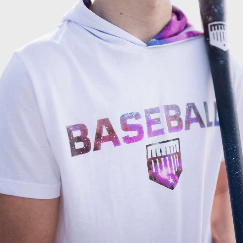 Introducing our classic white short sleeve hoodie, specially crafted for the baseball enthusiast.
