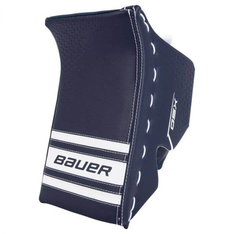The Bauer GSX Blocker is for the rec goalie. It features the flex cuff of Vapor with the coverage of Supreme, and now has new player dimension palms, allowing for better feel and connectivity.