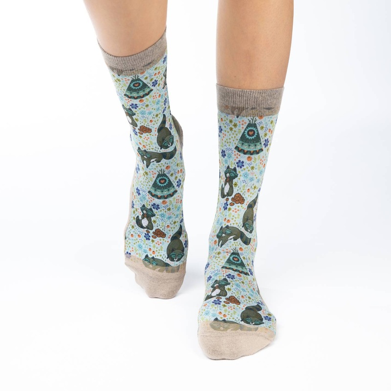 Celebrate the great outdoors with these women’s raccoon socks. The perfect finishing touch for all Fall outfits, these intricately designed novelty crews make an excellent gift.