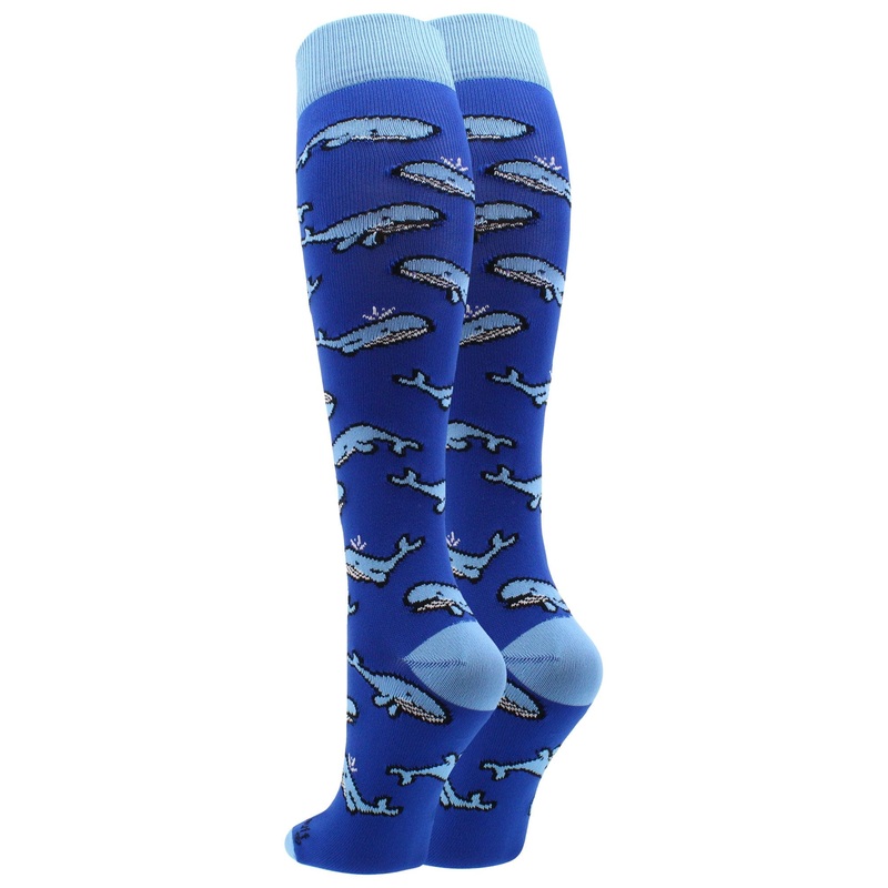 MadSportsStuff Happy Whales Athletic Over the Calf Socks. High performance athletic socks for all team sports and elite athletes.