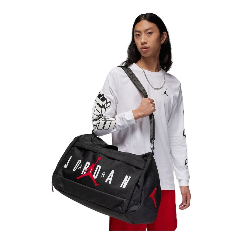 Made of durable polyester fabric and featuring Jordan logos on the front and sides, this spacious duffle makes it easy to pack what you need to hit the gym, the court, the field or an overnight trip. The spacious main compartment has a zip closure and houses a zippered mesh pocket to secure smaller items you don’t want lost in the shuffle, a smaller zippered compartment on the front houses an organizational pocket and the shoe garage on the side can be used to separate sport shoes or soiled clothing from the contents in the main compartment. The handles have a panel with hook-and-loop closures for easy carry and the adjustable, detachable strap with shoulder pad provides comfortable wear. Features include: 900D Polyester. Zippered main compartment. Inner mesh zip pocket. Large front zippered pocket. Lined shoe garage at side. 2 handles. Panel with hook-and-loop closures. Adjustable, removable strap with shoulder pad. 11.75″H x 25″L x 12.5″D; Strap length: 51″ (longest), 31.74″ (shortest)