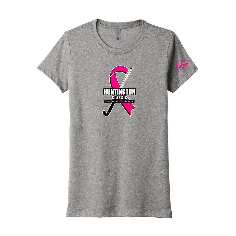 Huntington Classic Field Hockey Tournament Women’s Tee in vintage black, heather white, and premium heather! Logos printed on the front and left sleeve.