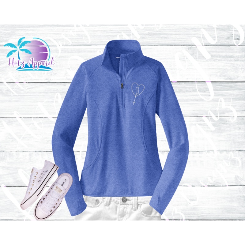 Jesuit Rosary Rhinestone Stretch 1/2 Zip Pullover