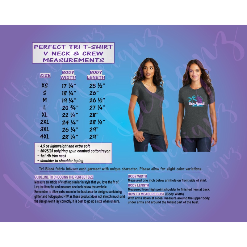 Sizing Guide included.Please read sizing information prior to ordering to assure your perfect fit. Color palettes vary from device to device and your shirt or design may look slightly different than the color shown on your screen.