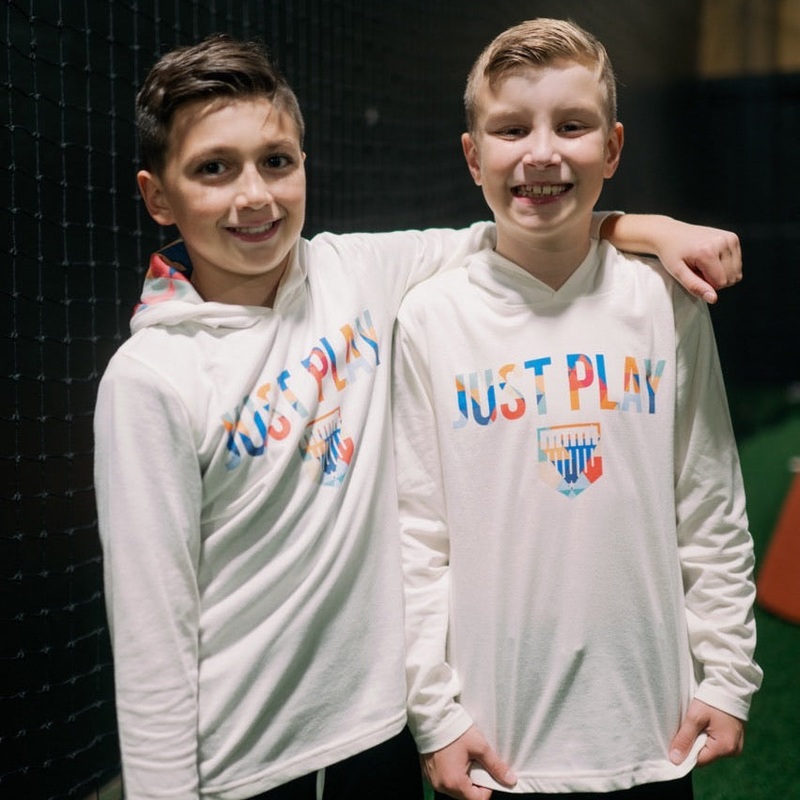 KMA-1345-ZUXQJust Play Long Sleeve Hoodie|Youth Medium|Youth Large|Youth XL|Adult Small|Adult Medium|Adult Large|Adult XL|Adult XXL