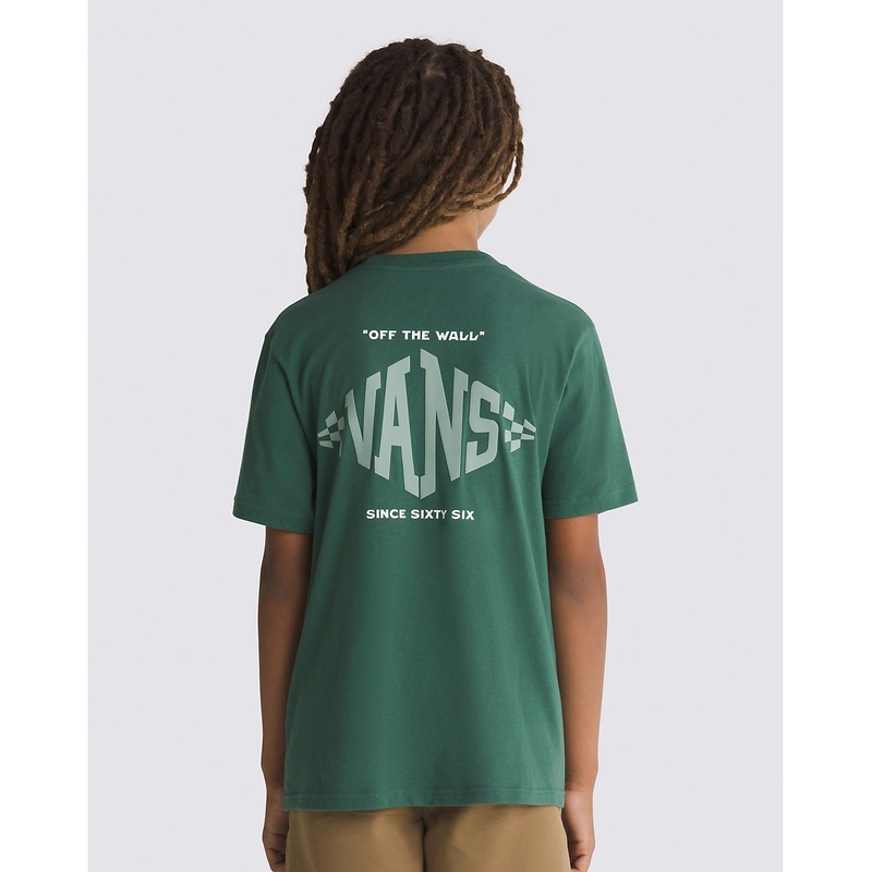 The Kids Diamond T-Shirt is a short sleeve crewneck tee made from a heavier weight cotton and features a screenprinted diamond shaped Vans logo graphic on the front and back.
