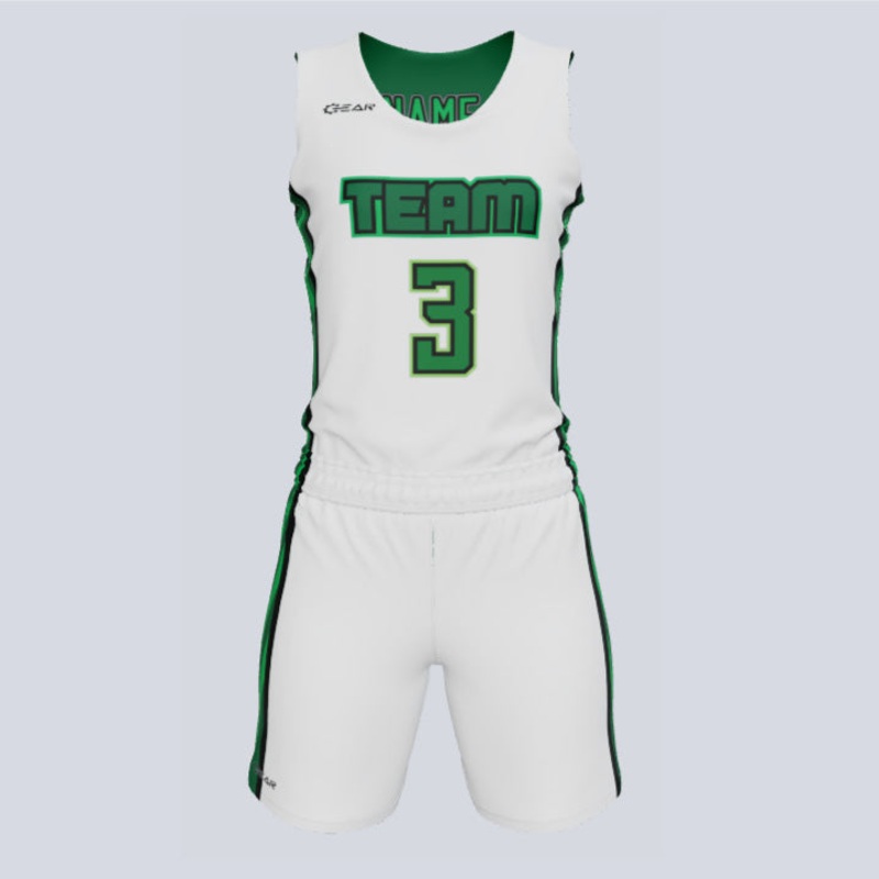 Leap ahead of the game with our women’s custom reversible “Jump” basketball uniform set! More than just customizable, this premium kit gives your team’s style a “jump-start”. Elevate your design game and “jump” your team pride to new heights with tailored jerseys and shorts. Our advanced moisture-wicking tech ensures your decision isn’t just an investment, but a high-flying “jump” towards unparalleled excellence.