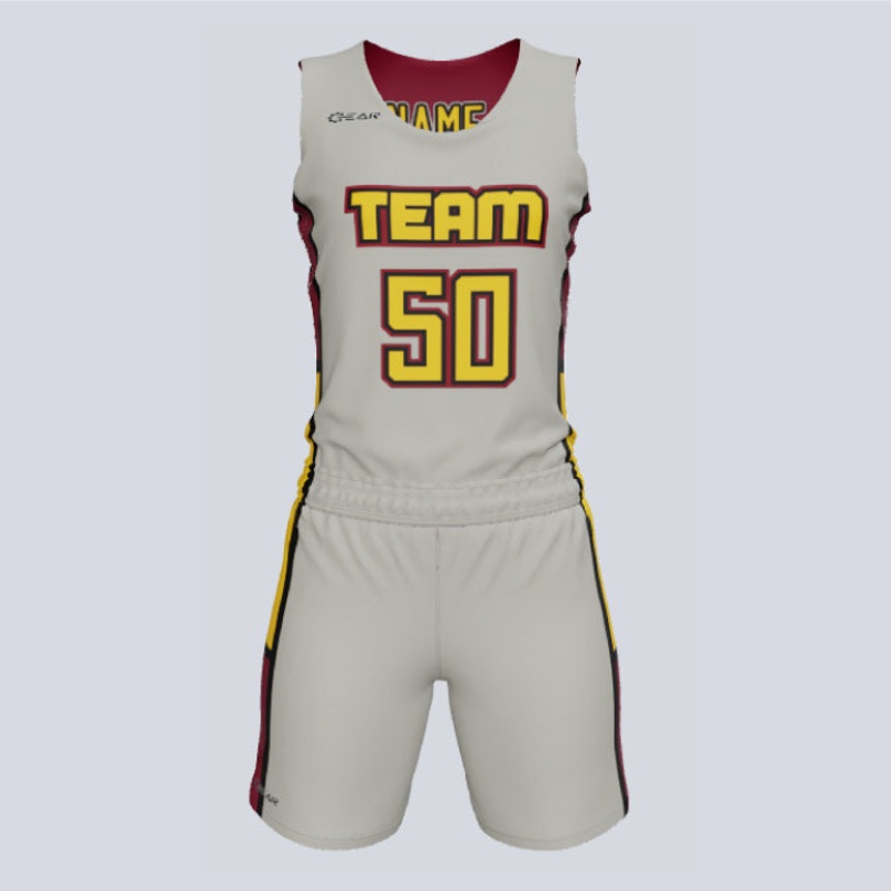 Rule the court with our women’s custom reversible “Qween” basketball uniform set! Beyond mere customization, this premium kit crowns your team’s unique style. Design like royalty, and elevate your team pride to regal heights with bespoke jerseys and shorts. With our advanced moisture-wicking tech, investing in this uniform isn’t just a choice, it’s a declaration of your reign in the “Qween” of uniforms.