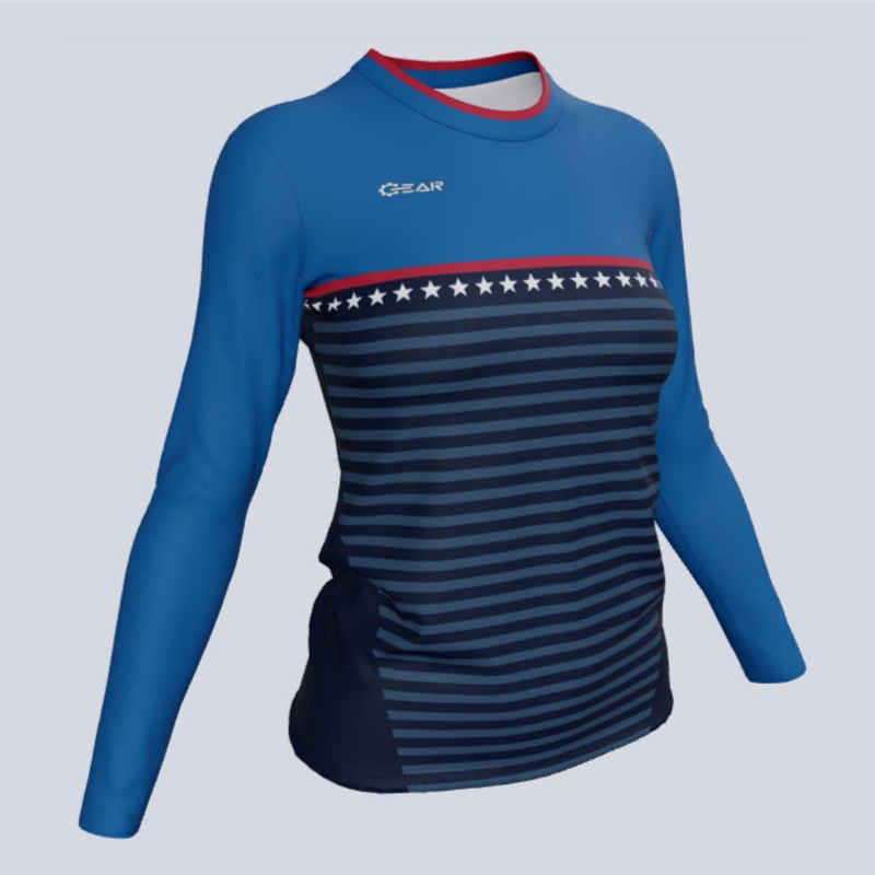 Shine bright on and off the field with the Ladies ECO Long Sleeve Crew Starz Jerseya stylish and sustainable choice for custom ladies long sleeve sublimated jerseys. Designed for peak performance and visual appeal, this jersey combines a flattering fit with eco-conscious materials and premium features like moisture-wicking fabric to keep you comfortable and focused.