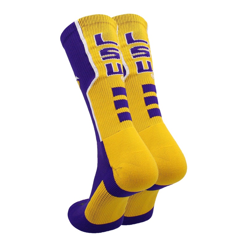 Officially Licensed Louisiana State University Tigers Perimeter Crew Socks. High performance athletic socks for all team sports and elite athletes.